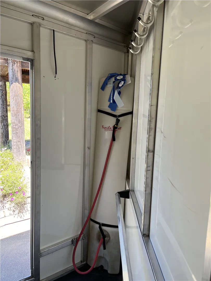 Extra large tack room,3 horse slant load,  one owner, seldom used, stored under cover, 7 1/2 foot extra tall height, excellent condition, electric jack, water tank, boot box. Loaded.