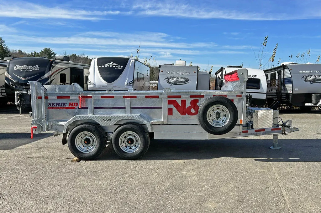 2024 N&N Trailers 7×14 14K Galvanized Hydraulic Dump Trailer w/Ramps, 2-Way Spreader Gate, Tarp Kit.