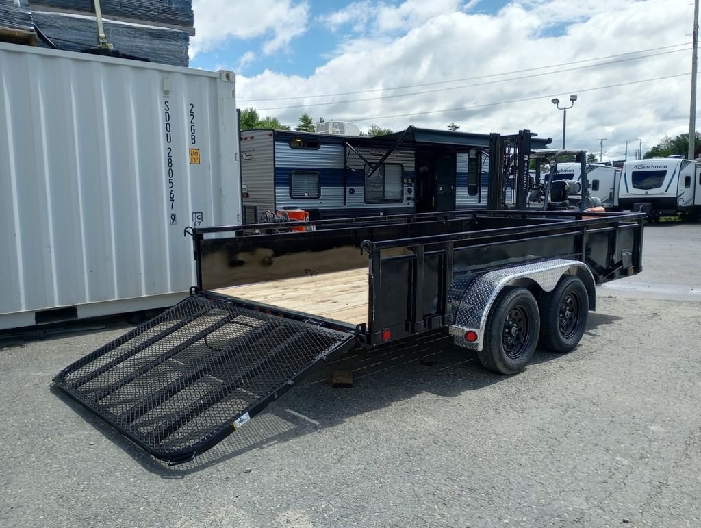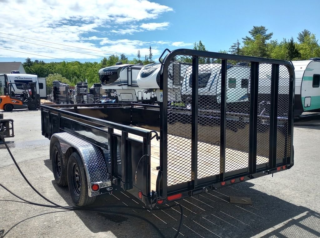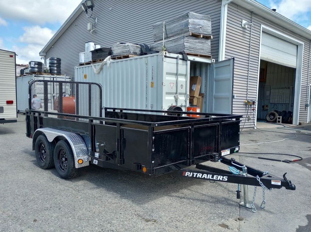 2024 PJ Trailers 7×14 7K Powder Coated Open Utility w/Rear Ramp Gate, Solid Metal Side Walls, Spare Tire Mount.